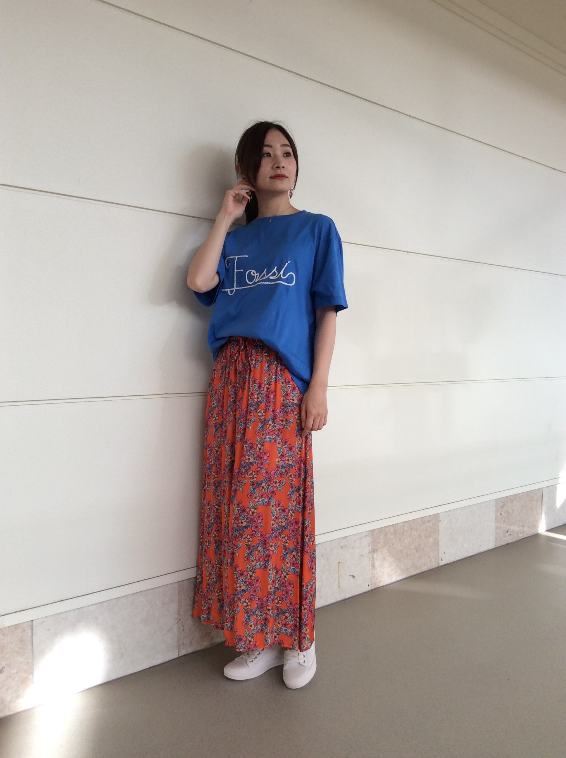 FOSSI ロゴ刺繍Tシャツ 4色展開 シンプルで可愛いロゴ刺繍Tシャツです。 【カラー】ホワイト、グレー、ブルー、ブラック 【サイズ】40 身幅66㎝、着丈前67.5cm、着丈後69.5㎝、 肩幅50㎝、袖丈21.5㎝ 【素材】綿100% 【洗濯】不可